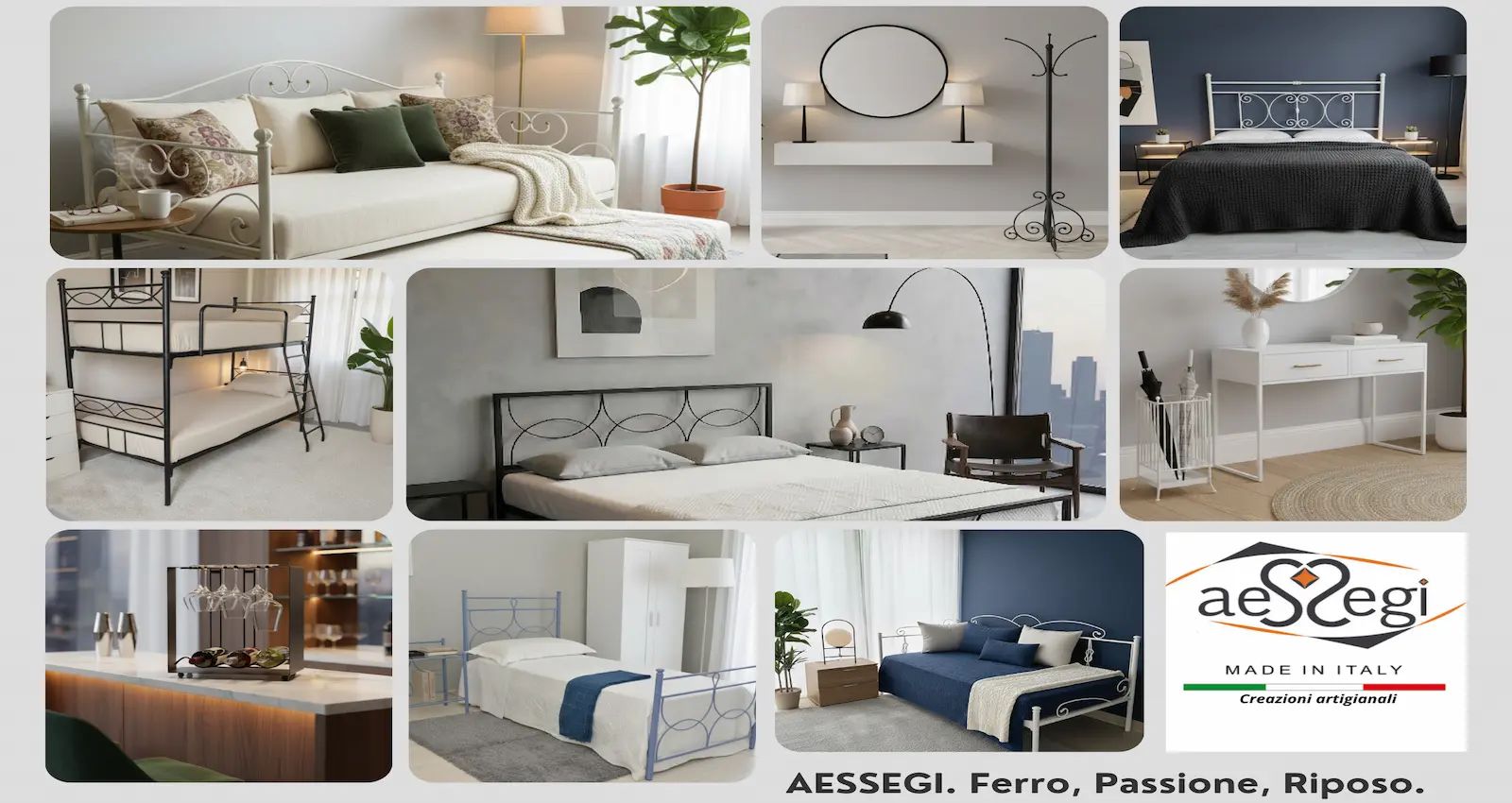 Dal 2004 AESSEGI realizza arredi in ferro battuto di alta qualità, interamente prodotti in Italia. Ogni pezzo, dai letti alle dormeuse, dai divani ai complementi d’arredo, è curato nei dettagli e personalizzabile su richiesta. Tradizione, eleganza e artigianato si fondono per creare prodotti unici, capaci di arricchire ogni ambiente con uno stile senza tempo.